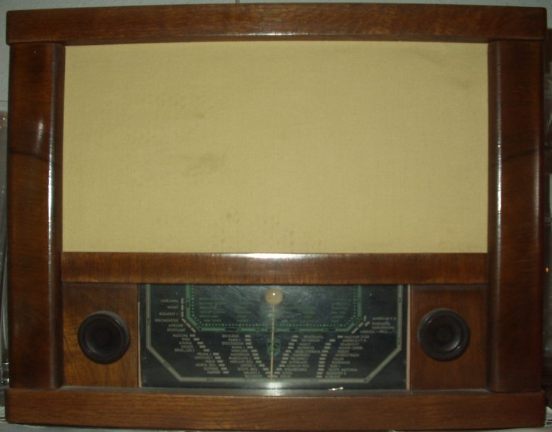 Nagyon poros volt a belseje. A politúr is lepattogott néhány helyen, de a tulajdonos nem kérte a javítását. A skála mögötti üvegről lepattogott a festék, újrafestettem. A fája szétrepedt, mert valaki beletekert vastag pozdorjacsavart (a törött részt kivágtam és pótoltam)! A hullámváltó katasztrofális állapotban volt, kijavítottam. Nagyon szépen szól! |